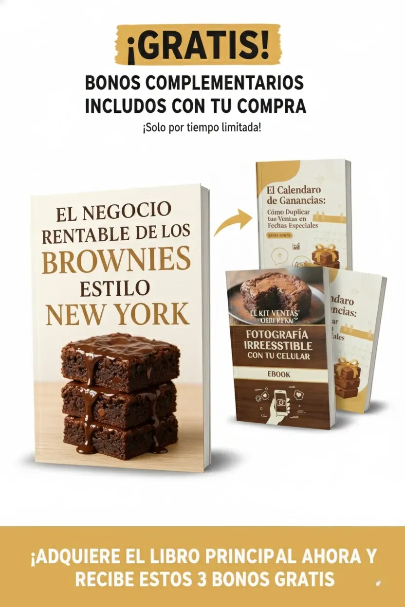 Al realizar la compra inmediatamente podrás descargarlo el libro digital EL NEGOCIO RENTABLE DE LOS BROWNIES ESTILO NEW YORK+ Los Bonos Complementarios